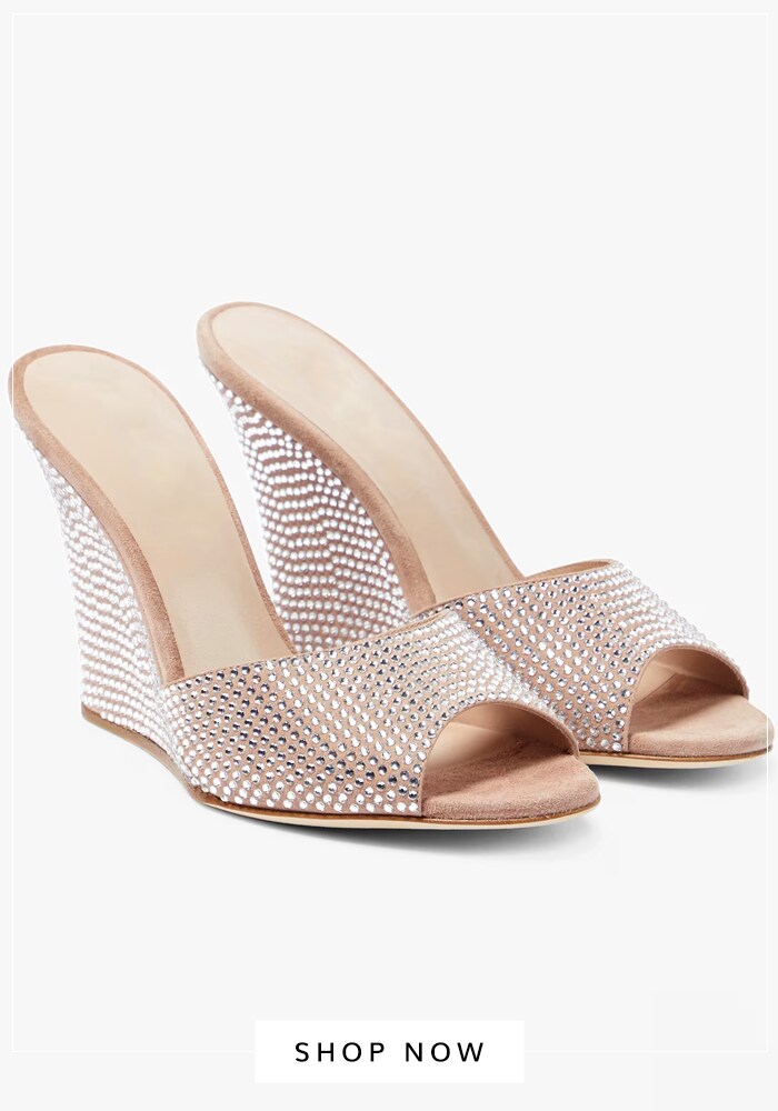 There’s nothing a crystal-embellished wedge can’t fix. This pick from our designer shelves can complement dresses, jumpsuits, pant sets, and all your favorite contemporary pieces.